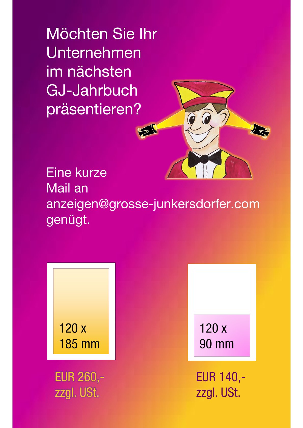Wenden Sie sich gern an anzeigen@grosse-junkersdorfer.de
